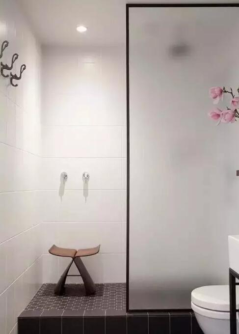 也有人可能不喜欢淋浴房,觉得太死板了。那么不做淋浴房,仅用玻璃做一边的隔断也是可以的。视线更好视觉上空间也不会显得狭小,而且洗澡不闷(当然了,冬天没有淋浴房温暖,两者各有所长)。建议配合防水条一起,干湿分离效果更好。